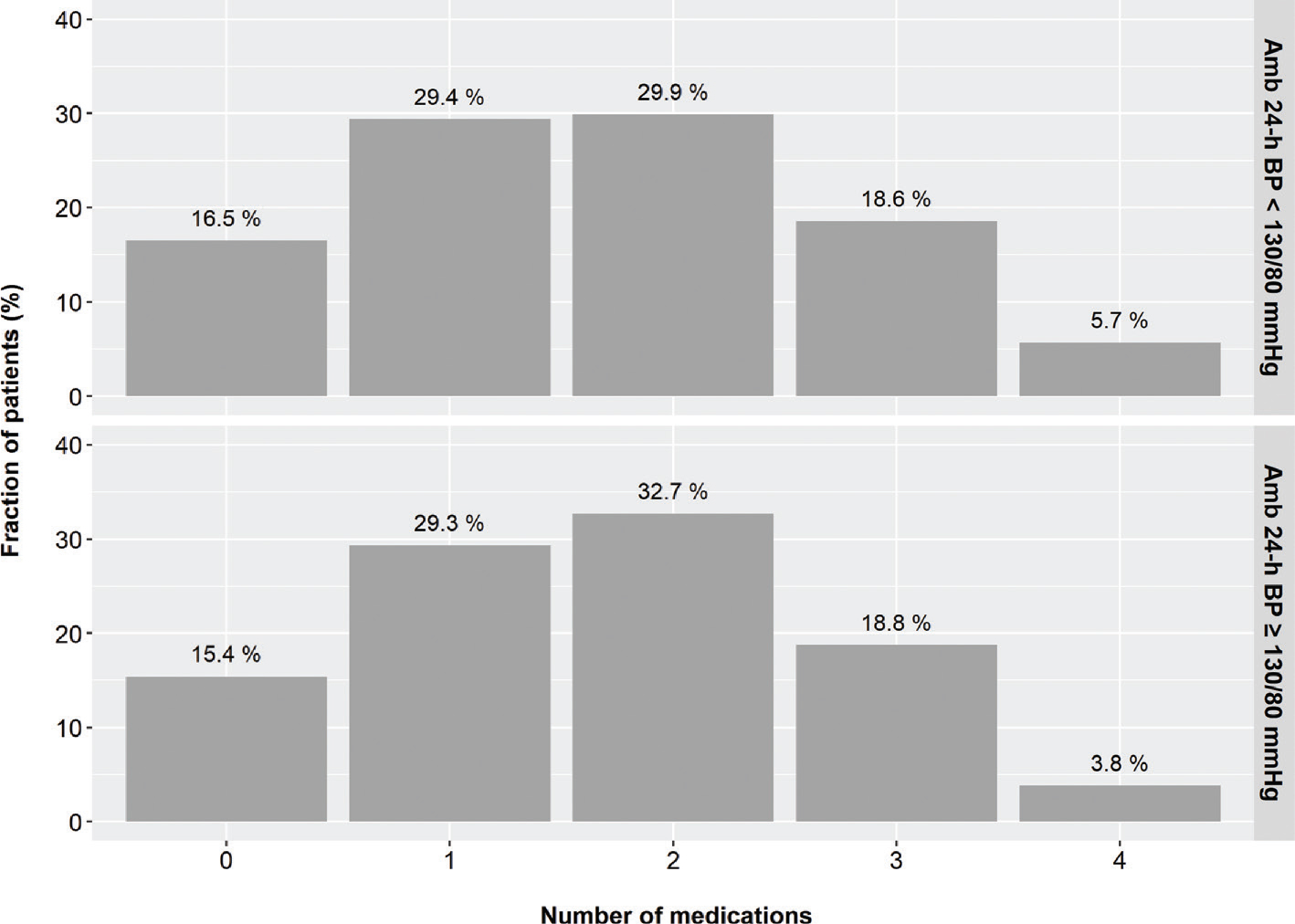 Figure 2. The distribution of the number of prescribed antihypertensive medications according to ambulatory blood pressure levels.