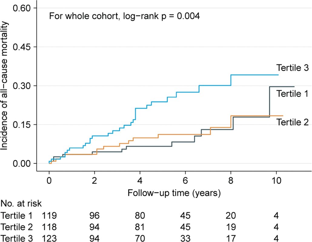 Figure 2. Kaplan–Meier analysis showing cumulative all-cause mortality by baseline SII tertiles.