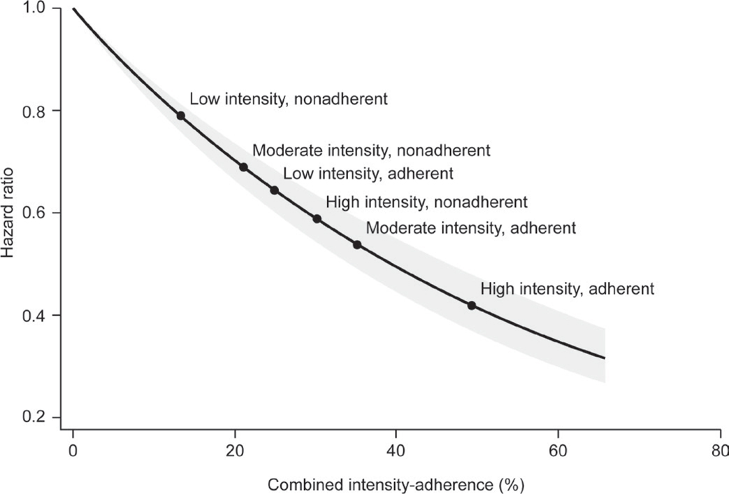 | 10% increase in combined intensity-adherence | 0.84 (0.82–0.86)* | 0.84 (0.82–0.87)* | 0.87 (0.83–0.92)* |